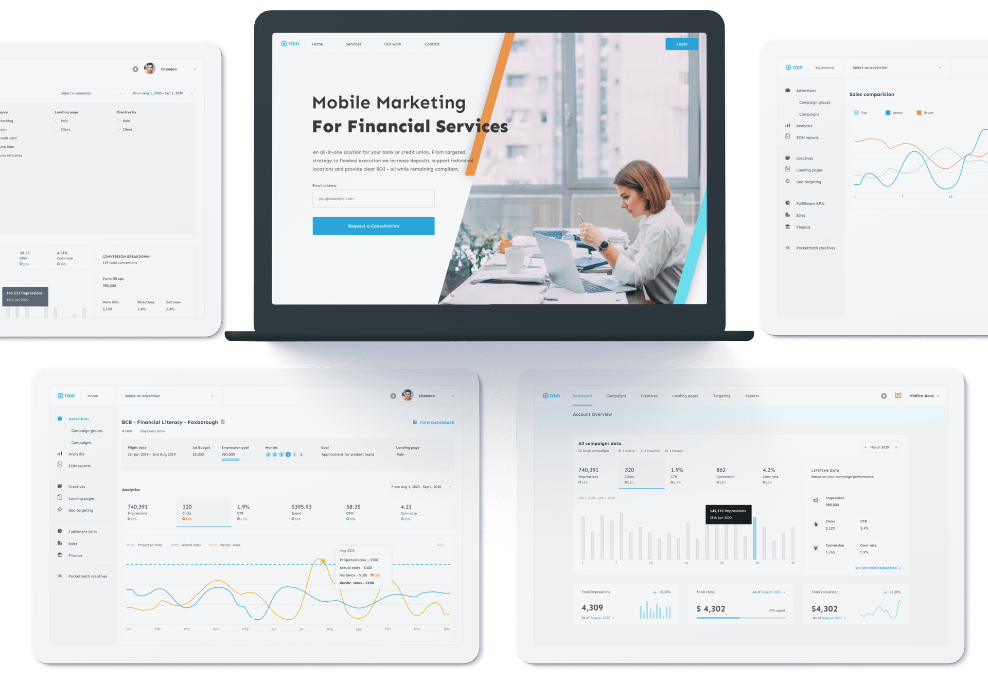 I designed and developed new website, client dashboard and admin panel for Rain. My major challenge was disagreement between stakeholders, which we solved by consistent meetings and proper communications. Here is a list of my deliverables
